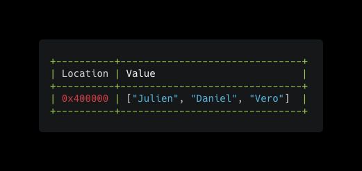 Cet Array va être stocké dans la mémoire (Heap) à une adresse mémoire spécifique (Location)