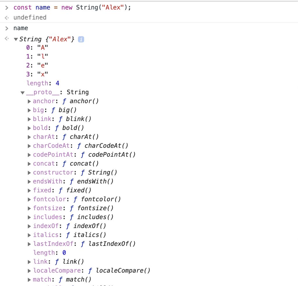 const name = new String('Alex');