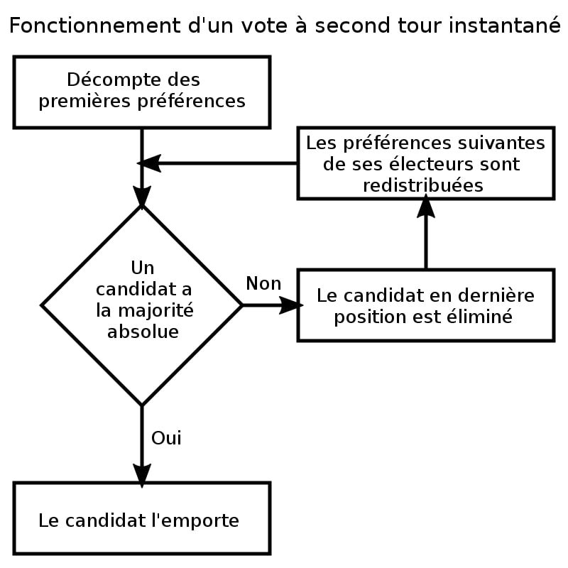 On ne rentrera pas plus en détail de cette méthode dérivée de Condorcet, mais la chose à retenir est que l'obligation d’obtenir une majorité absolue augmente fortement la légitimité de l’élu, mais ne permet pas toutefois d’élir forcément un gagnant de Condorcet, dommage... Heureusement, il existe un moyen d’y remédier.